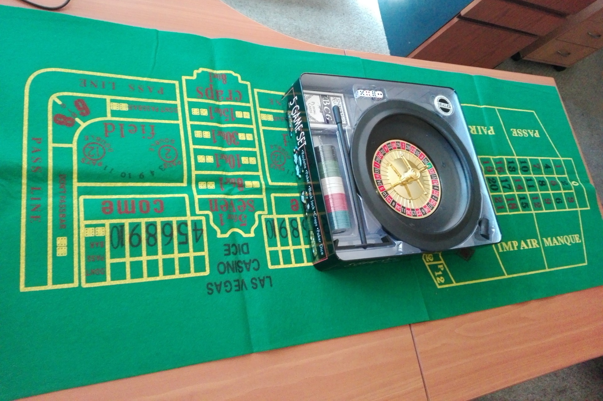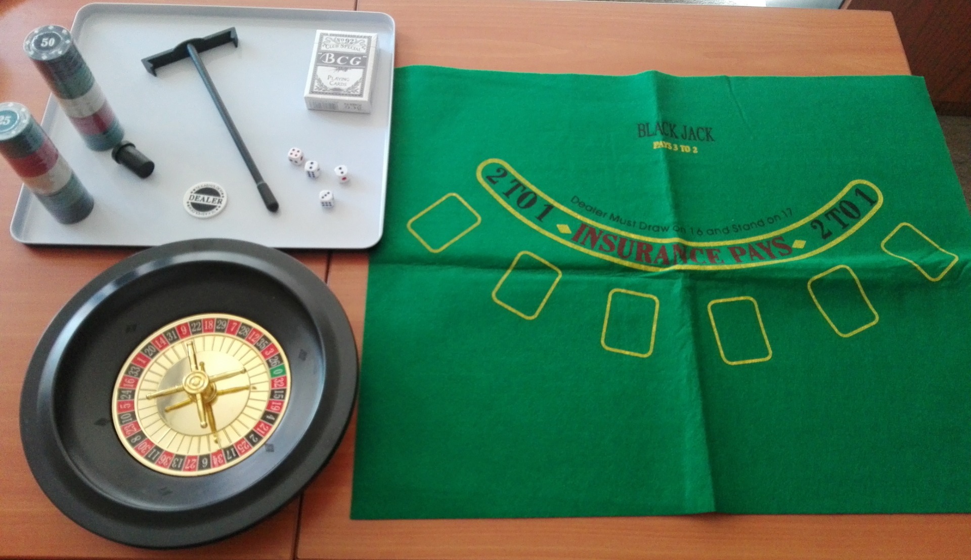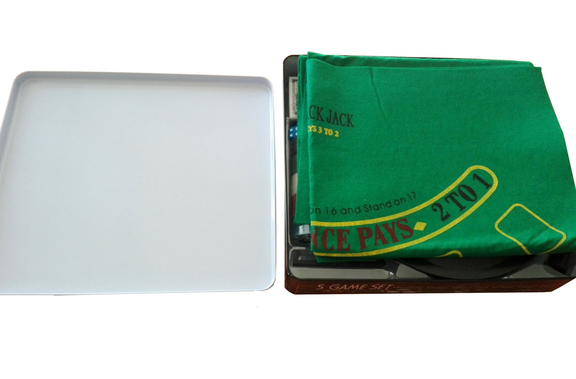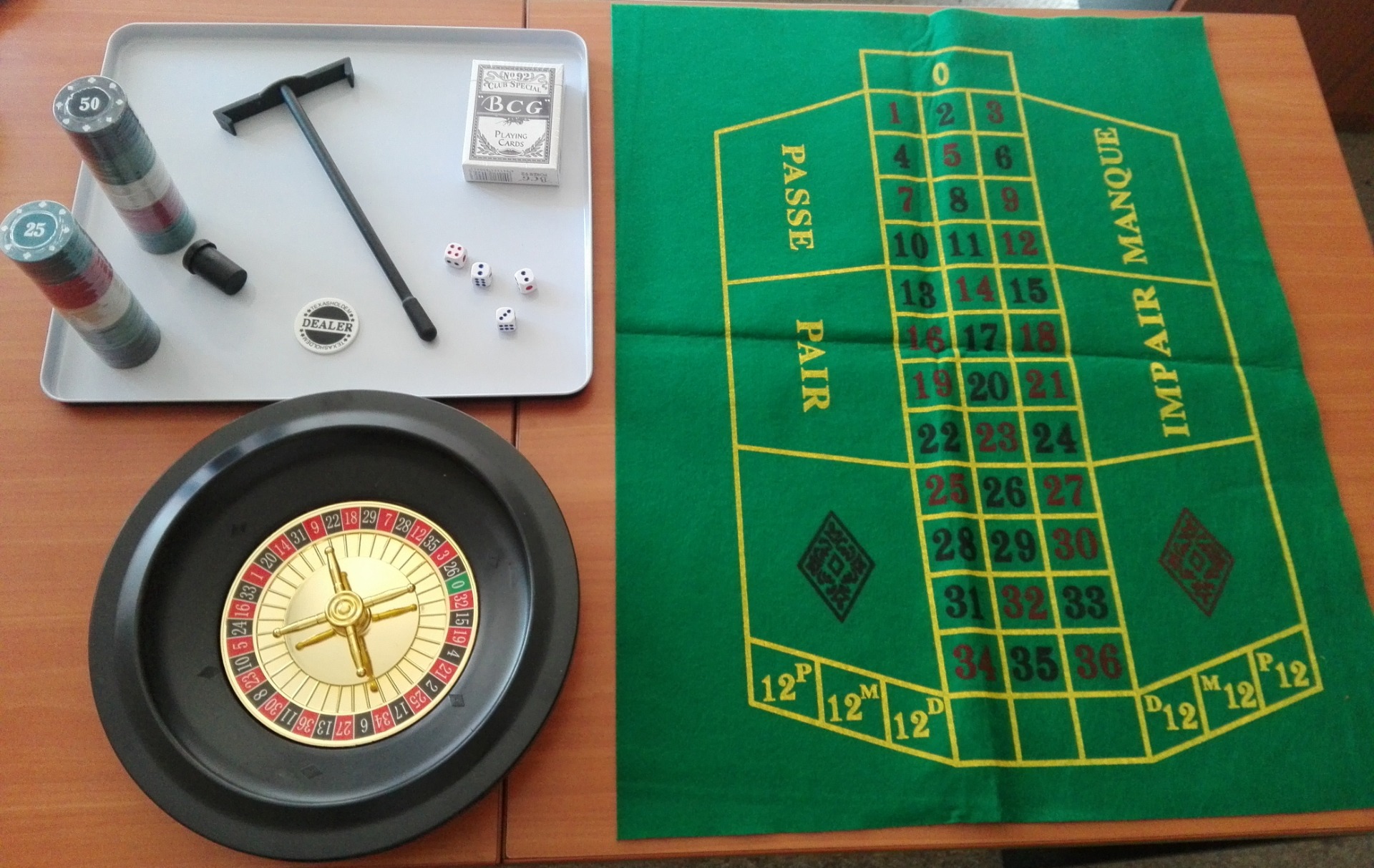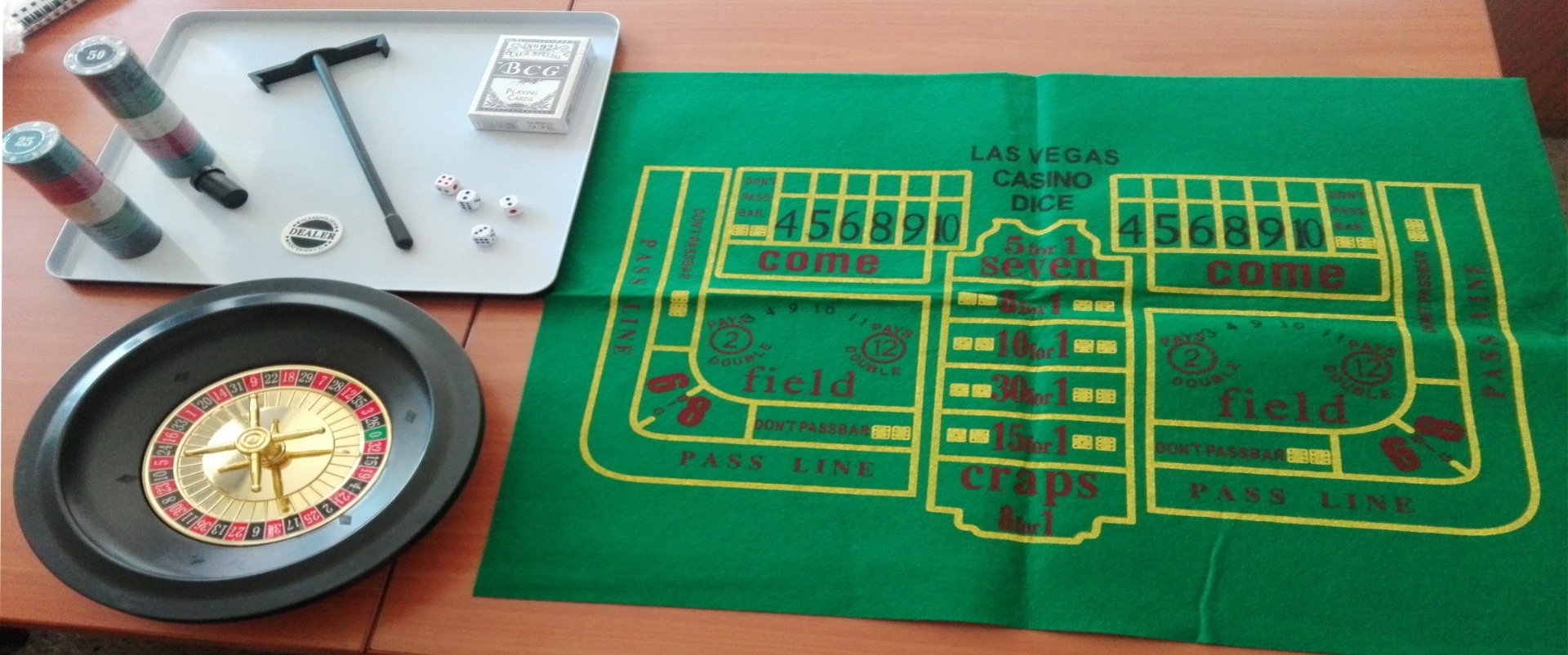 -2 paños demarcados para Black Jack, Craps y Poker.